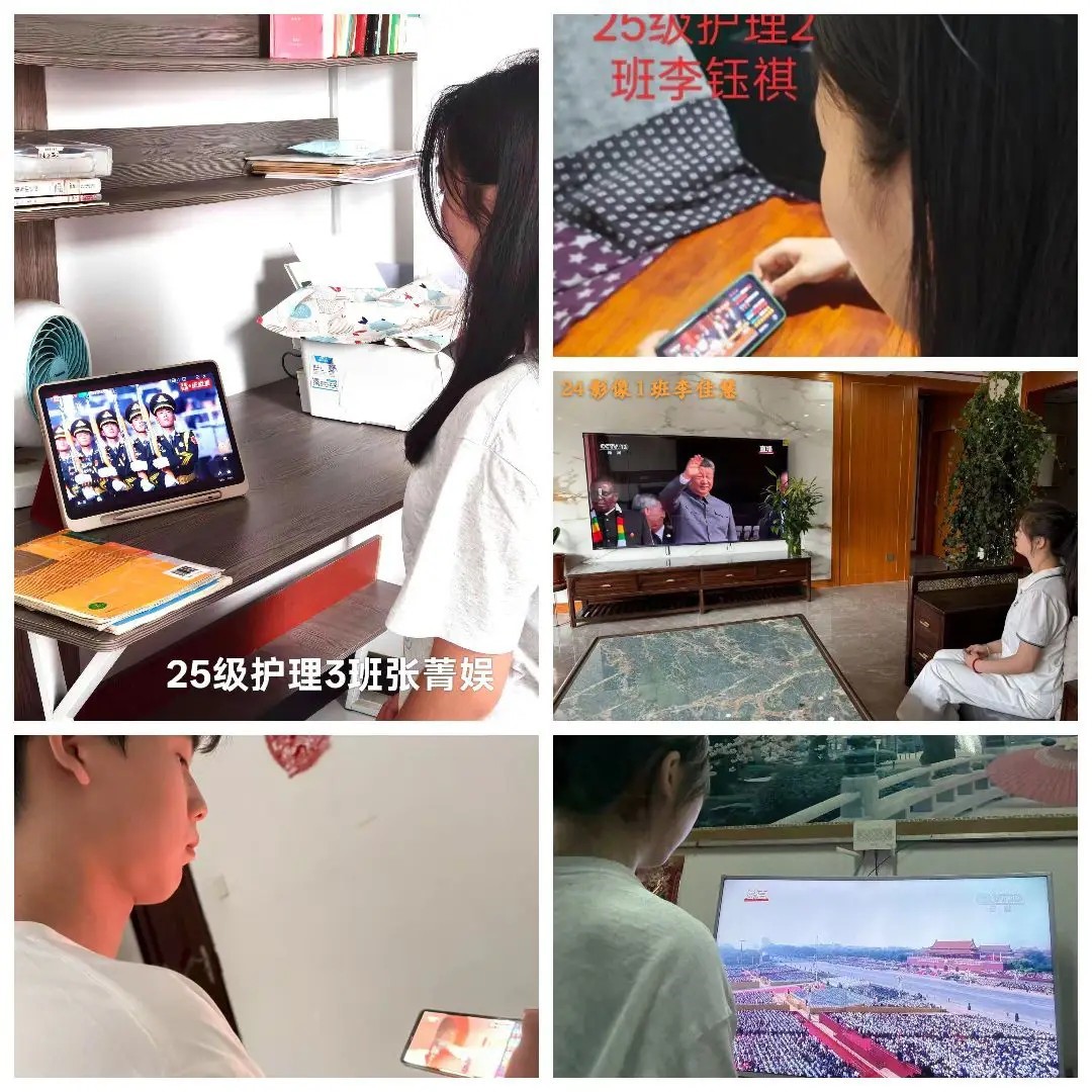 天安门广场旌旗飘扬,千里之外的师生们凝视屏幕,共同见证这场承载着历史与未来的庄严盛典。
