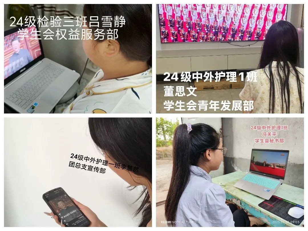 yl6809永利注重将专业特色与爱国主义教育相结合。观看结束后,院部员工会精心制作了相关视频,同学们积极参与录制,分享观看心得。有的员工讲述抗战故事缅怀先烈,有的则结合所学专业表达将爱国情怀转化为救死扶伤使命的决心。
