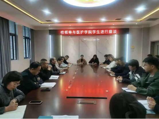 座谈会上,同学们结合自身实际,敞开心扉、踊跃发言,围绕学习实践、校园生活、生涯规划等多个方面分享了感受,并提出了在学习生活中遇到的具体问题和困惑。在场领导认真聆听了每一位同学的发言,并针对大家普遍关心的问题进行了耐心细致的现场解答和回应。对于同学们提出的合理化建议,领导们表示将认真研究,纳入后续工作改进参考,并尽快落实。领导们还结合自身阅历和医护专业特点,对同学们如何更好地规划老员工活、提升专业素养、应对成长挑战给予了宝贵的指导和建议。