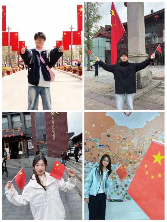 活动倡议一经发出,便得到了同学们的积极响应。假期里,无论是在繁华的商业街区、美丽的城市公园,还是在返乡的旅途之中,同学们纷纷寻找身边的“中国红”,在飘扬的国旗下驻足,用镜头记录下与国旗同框的庄严瞬间。一张张朝气蓬勃的笑脸,与鲜艳的五星红旗相互映衬,构成了一幅幅动人的画面。