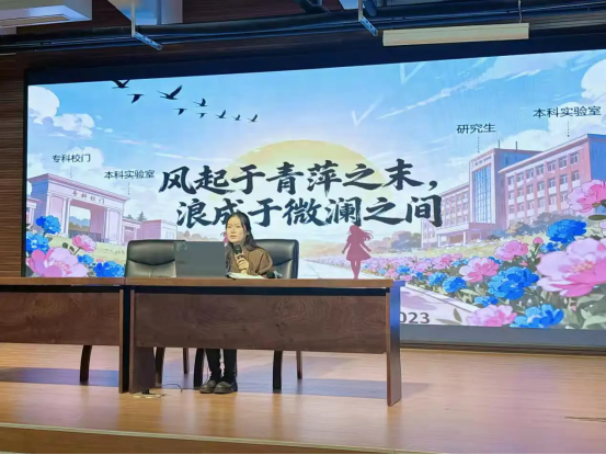 报告会在热烈掌声中拉开帷幕。闫慧峰首先对柴苗苗返回母校表示欢迎,并介绍了她在校期间勤奋学习、屡获国家奖助学金,毕业后通过不懈努力,成功实现“专升本”并考取硕士研究生的奋斗历程,称赞其为在校生树立了真实可感的榜样。