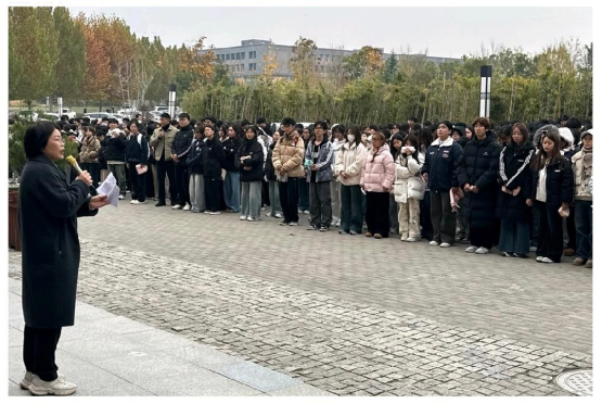 活动伊始,学工办主任闫慧峰首先就消防安全知识进行了系统讲解,重点包括火灾预防、正确报警方式、火场疏散逃生及自救互救要领等内容。随后,党总支副书记周凤雷在动员环节中进一步指出,在人员密集的校园环境中举行消防演练具有重要的现实意义和必要性,是筑牢校园“防火墙”的关键举措。她要求全体师生认真参与接下来的应急疏散与灭火知识培训,切实强化“消防安全,人人有责”的意识,全面提升应急处置能力。