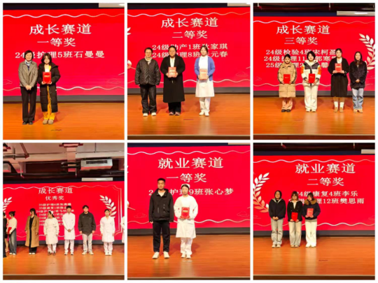 主题陈述环节,选手们结合PPT,充分展现了医员工严谨求实的专业特质。 成长赛道的选手们深入剖析了个人特质与护理、临床、康复等职业的匹配度,清晰地勾勒出从理论学习到临床实践,再到专业深耕的成长蓝图。就业赛道的选手则更多聚焦于具体的岗位能力要求,系统展示了扎实的专业技能、丰富的实习实践成果以及对未来医疗卫生行业发展的深刻洞察。