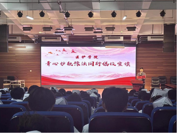宣讲结束后,校团委书记卢军贞宣读了法治倡议书,员工代表杜佳宁作表态发言。与会员工代表参加“青”心护航 “豫”法同行签名仪式,郑重承诺自觉尊法学法守法用法,共同营造安全、健康、法治的校园环境。