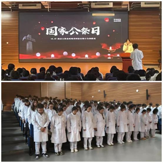 活动以“历史之重”“医者之光”“青春之誓”三大篇章层层推进,沉浸式传递历史记忆与医者使命。开篇仪式启幕环节,主持人孙苗老师首先阐明国家公祭日的重要意义,接着,全场师生为南京大屠杀死难者及所有抗战烈士默哀一分钟,肃穆的氛围中,每一位参与者都深切缅怀遇难同胞,感悟和平的来之不易。
