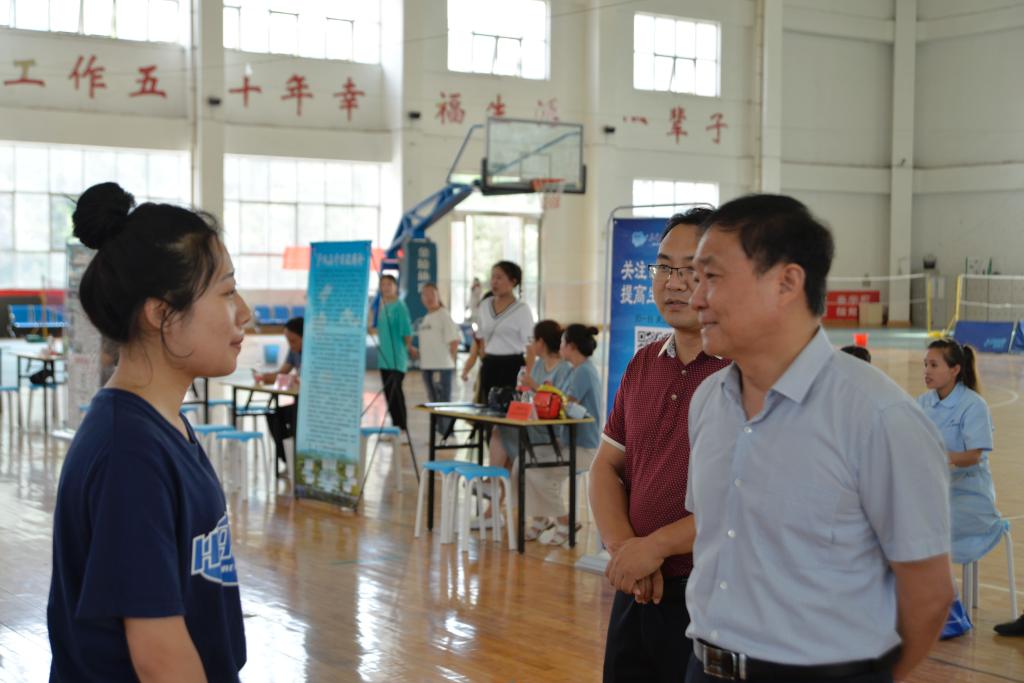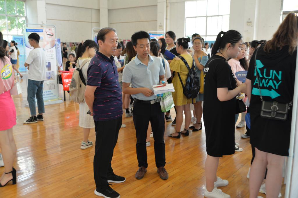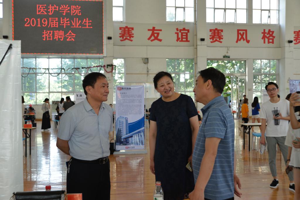 三门峡职业技术公司党委副书记、经理吴勇军、经理助理李启松、招办主任王波在公司党总支书记杨丽波的陪同下也来到了招聘会现场指导工作,与招聘单位及求职员工亲切交流,了解各单位招聘计划及要求,听取用人单位意见建议。吴勇军经理对公司举办此次招聘会给予了充分的肯定,同时对公司今后的毕业生就业工作提出了四点建议:一是要深入摸底,了解员工的实际情况,做到精准就业; 二是要从新生入学开始,引导员工做好职业生涯规划,做好就业教育;三是在推介指导、文化价值观培育方面下功夫,建立广泛的就业市场;四是提供好的顶岗实习医疗单位,为员工搭建优质继续教育平台。王波主任强调公司一直重视毕业生的就业工作,通过多种渠道为毕业生就业提供服务保障,搭建平台,为毕业生就业提供更多的机会,此次yl6809永利招聘会参加单位多,氛围非常好,员工积极性也很高,希望能够再接再厉,不断提高毕业生就业质量。杨丽波书记也表示公司将继续因材施教,强化员工专业基本功,培养优秀医疗人才,提高员工就业竞争力。