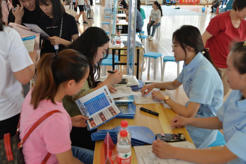 为促进员工更好的就业,进一步搭建校企人才沟通合作平台,扩宽员工就业渠道,给员工提供全面有效就业服务,6月12日上午,yl6809永利2019届毕业生专场招聘会在校体育训练中心举行。据统计,共有45家用人单位参加了招聘会,提供了近600个岗位,吸引了yl6809永利护理、助产、康复及中药专业近1000余名毕业生参加,许多低年级员工也积极到现场了解企业的用人需求,明确以后就业方向,酷热的天气丝毫没有影响应聘员工的热情,招聘会现场气氛热烈。