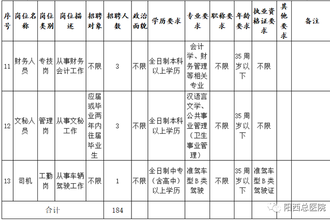 1.聘用结果可登陆阳西总医院公众号查询。2.笔试、操作考试及面试凭本人身份证进场,考试期间关闭通讯工具,不准携(夹)带任何书籍、笔记本、纸张等。3.空缺岗位或临床医学类等紧缺岗位招聘长期有效,招满即止。