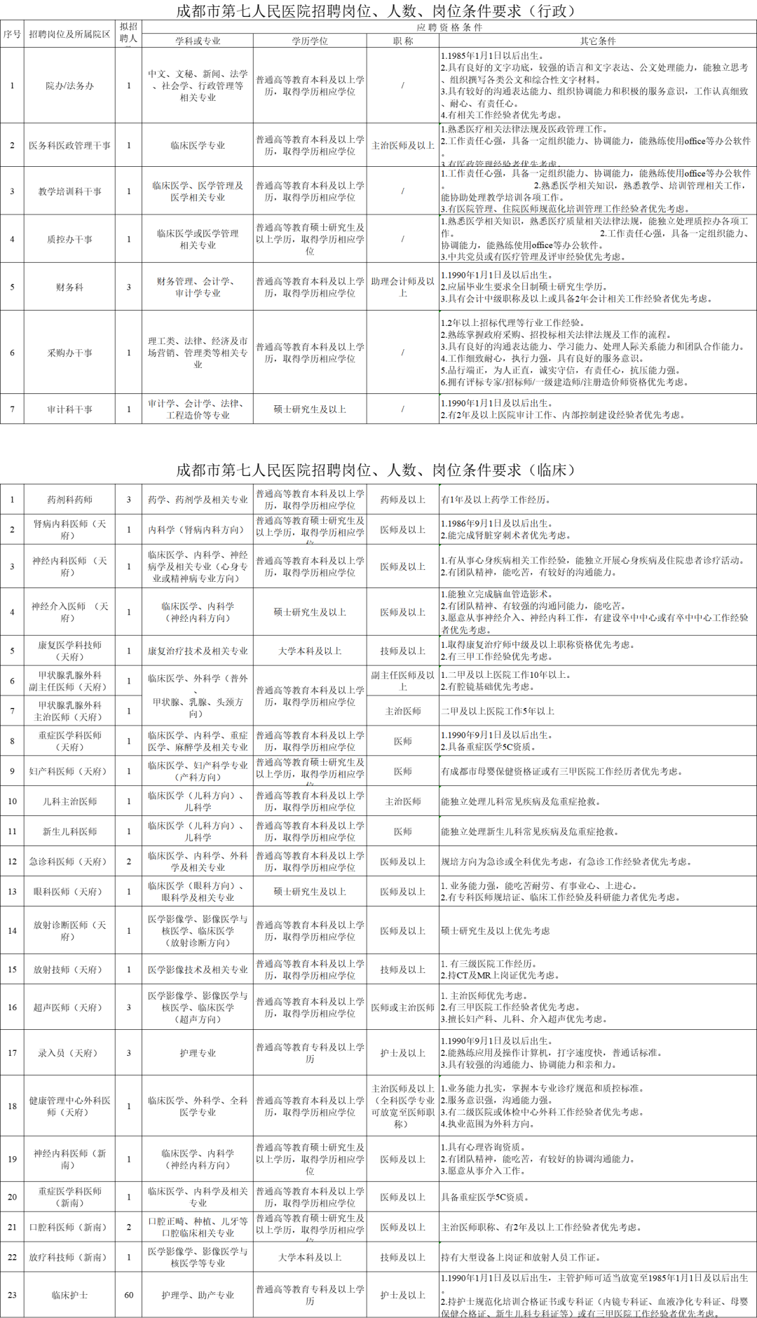 2.报名方式:采取网上报名,不设现场报名点。下载并填写附件2《成都市第七人民医院报名表》、附件3《成都市第七人民医院应聘人员简历表》。