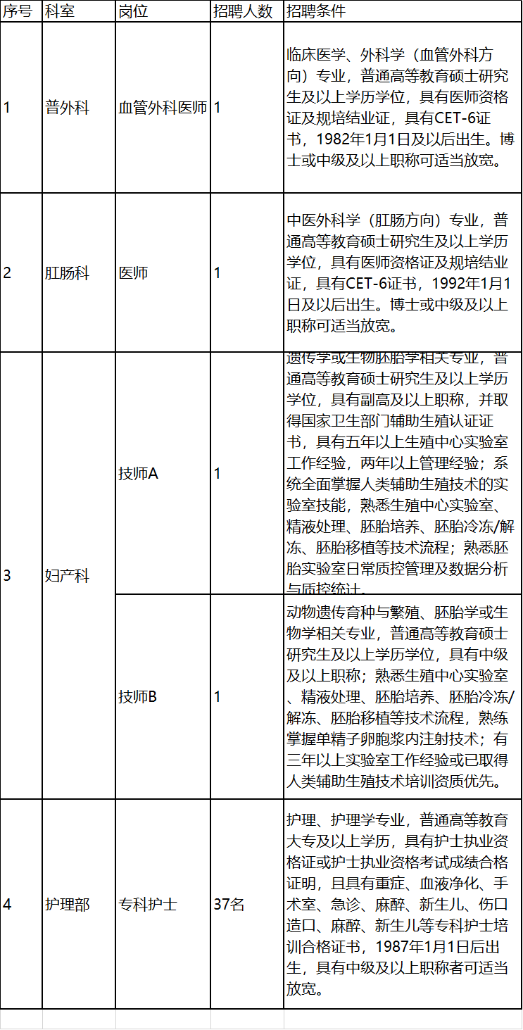 因工作需要,成都市第三人民医院现面向社会公开招聘41名工作人员,招聘条件和程序如下: