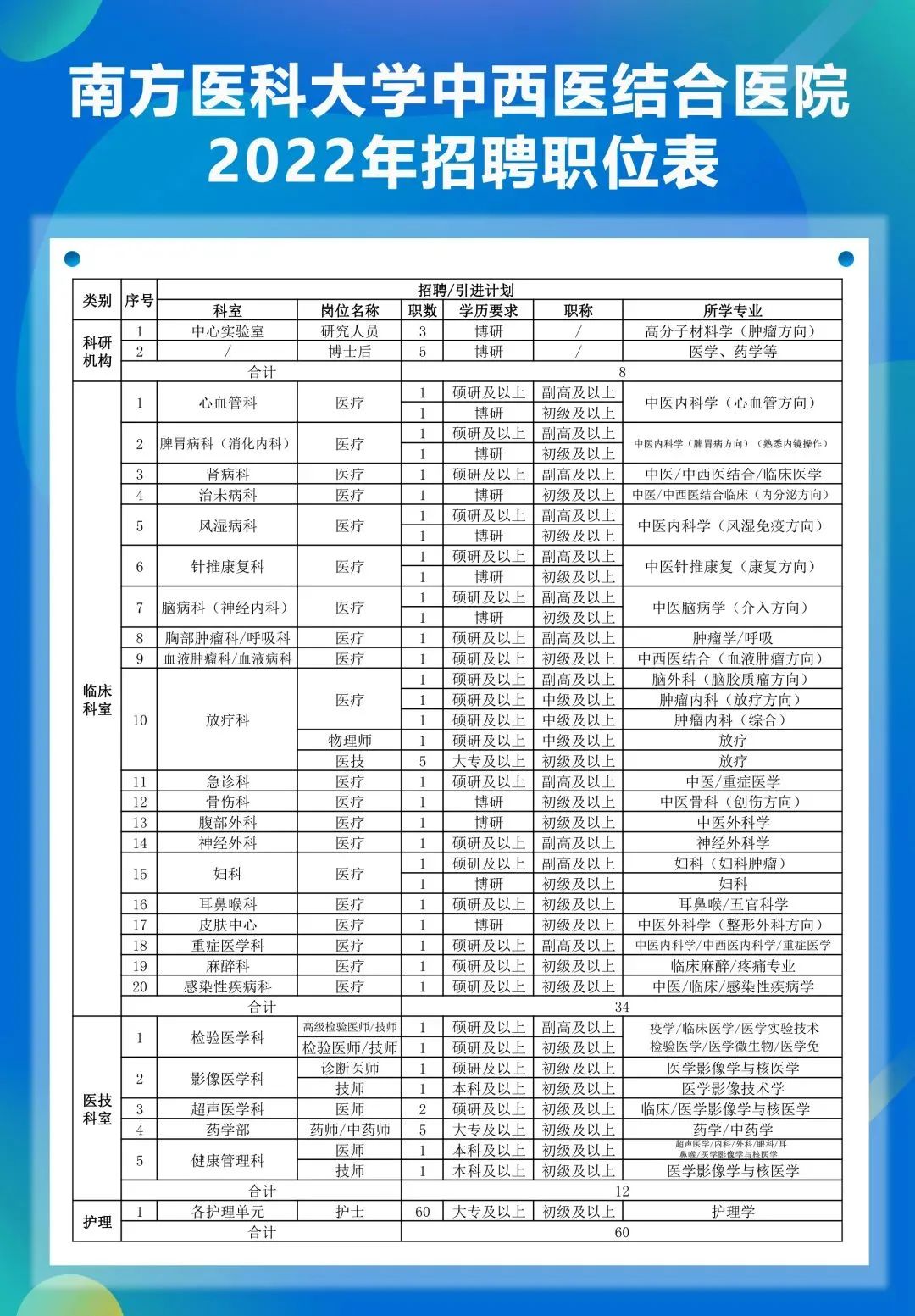 因医院发展需要,现提供医疗、医药、护理、医技等多个岗位,详见2022年招聘人才职位表,欢迎广大有志之士加入!
