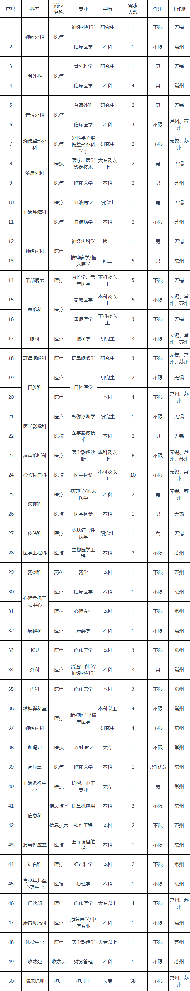 江苏省无锡市第九〇四医院招聘工作人员156人