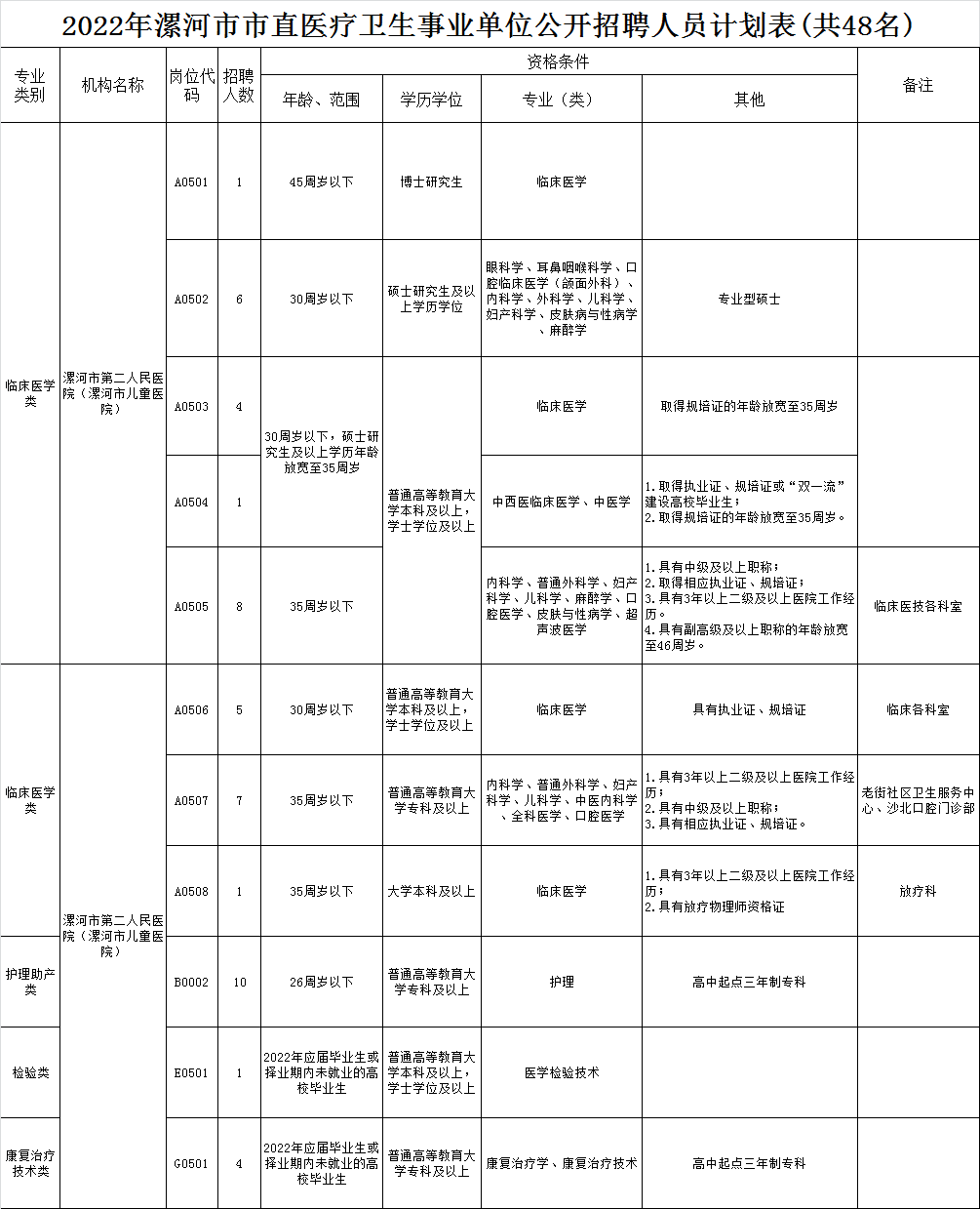 根据人员编制空缺情况和工作需要,漯河市第二人民医院面向社会公开招聘工作人员48名。