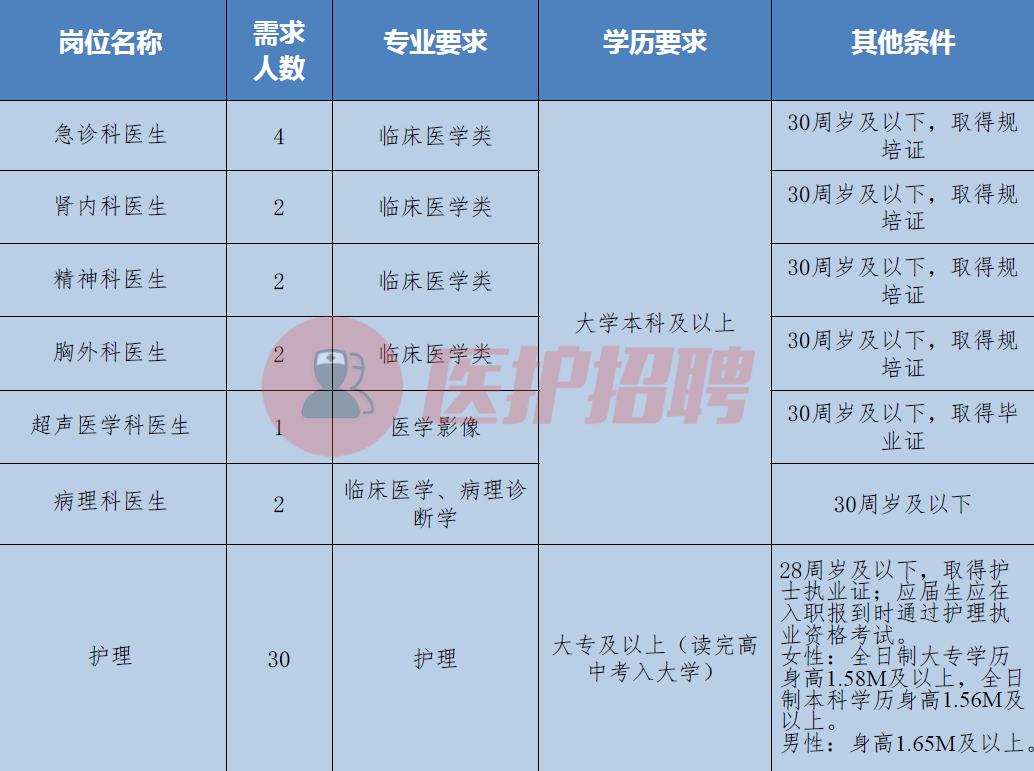 (二)护理岗位按照报名、理论考试、技能考试、面试、试岗、体检、入职等程序进行。