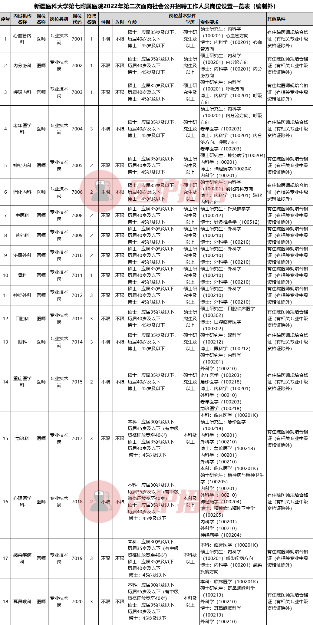 医护招聘温馨提示:新疆医科大学第七附属医院,2022年度招聘护士、临床医师、中医师、急诊重症医师、影像、麻醉、检验、病理医师、药师、康复等155人,报名截止至2022年7月4日。欢迎人才加入公司!