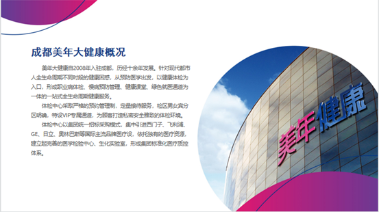 美年大健康产业(集团)有限公司(以下简称“美年大健康”)始创于 2004 年,是中国专业的健康体检和医疗服务集团,总部位于上海,于 2018 年正式完成中国内地版图的全覆盖。截至 2019 年年底,公司已在全国布局经营 499 家专业体检中心,拥有院士、教授、主任医师、医疗人员、健康顾问所组成的近 60000人的专业服务团队,是在预防医学领域拥有广泛影响力的领军企业。