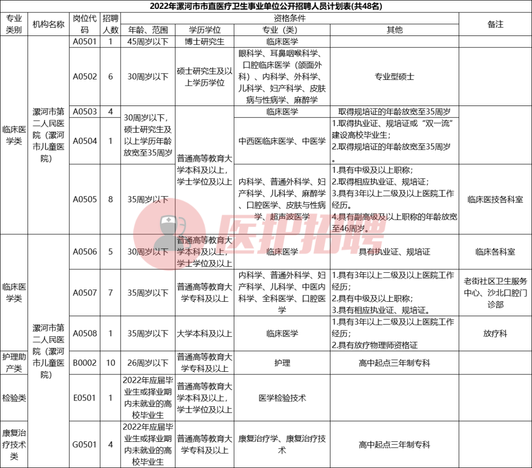 根据人员编制空缺情况和工作需要,漯河市第二人民医院面向社会公开招聘工作人员48名。