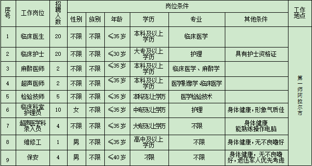第一师阿拉尔医院因工作需要,现面向社会招聘工作人员若干名。现将有关招聘事宜公告如下: