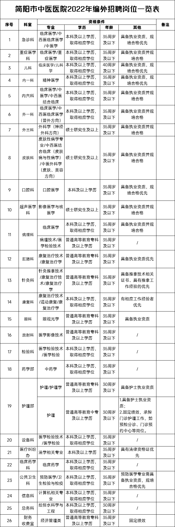请自行下载并完整填写《简阳市中医医院临聘人员面试报名表.doc》,将《简阳市中医医院临聘人员面试报名表》附在简历首页;前期已投送过简历的人员,请按照报名资料最新要求重新投递。