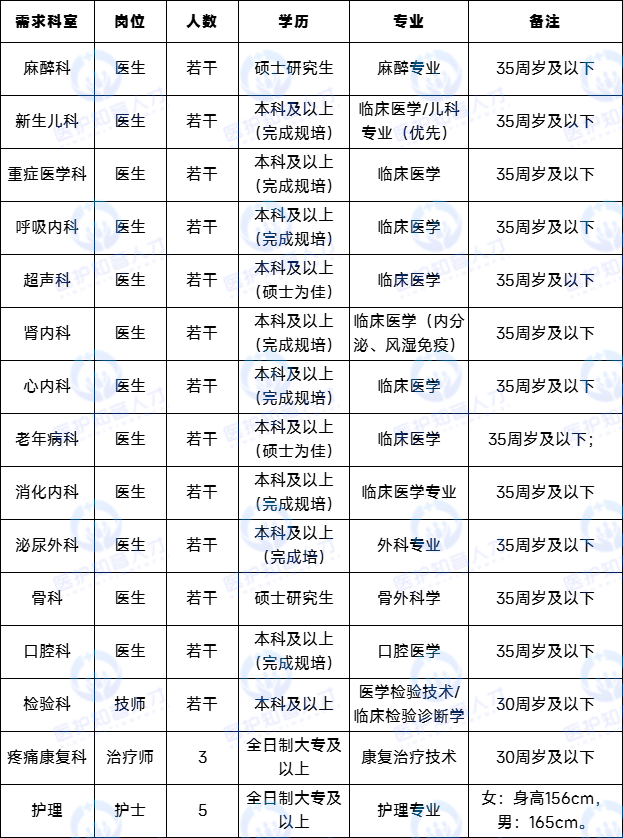 医院人才济济,现有在岗职工950余人,其中专业技术人员840余人,有高级职称160余人,中级职称260余人,研究生20余人,先后有32人次获得市、县名医称号,其中广安市名医10名,3位市级学术技术带头后备人选。已建成神经内科、儿科、骨科、普外科、妇产科、麻醉科、肾内科7个市级重点专科;在建项目市级重点专科8个;建立了微创治疗中心、健康管理中心、血液净化中心、新生儿科、肿瘤科、产后康复保健中心、口腔科、疼痛康复科、老年病科等特色专科。