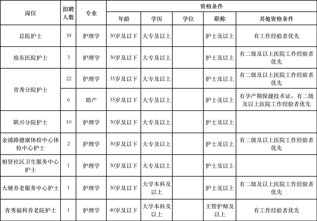 1.高层次人才岗位:临床医学、医学技术、护理相关专业的博士或高级职称者,以及护理专业硕士者均可报名。