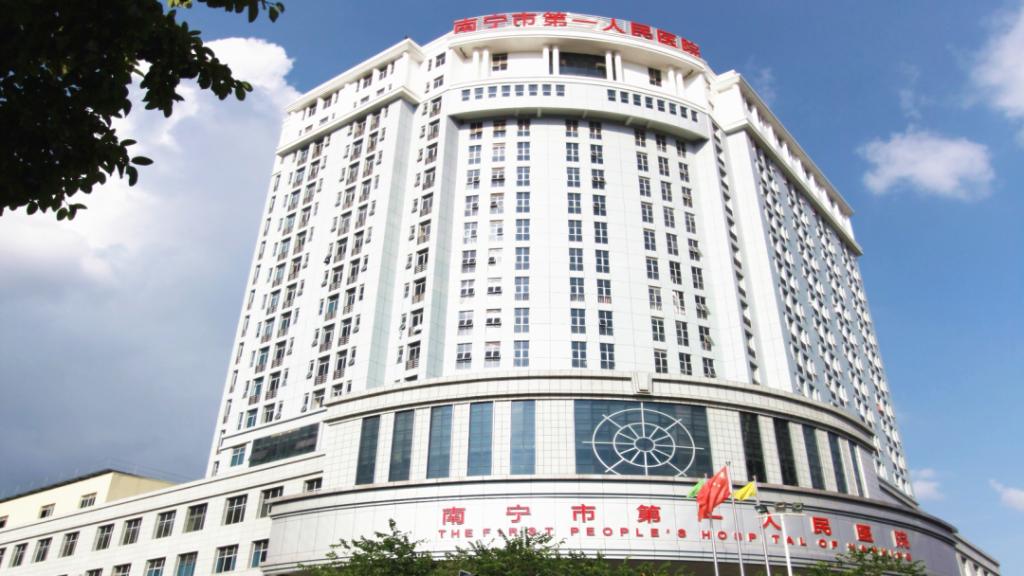 南宁市第一人民医院(总院)地处广西南宁市青秀区七星路89号,占地面积4.4万平方米,总建筑面积131353.04平方米,其中业务用房面积85480.91平方米,设有58个临床科室,20个医技科室,编制床位1240张,开放床位1500张。医院始建于1914年,是一家拥有百年历史的国家三级甲等综合性医院,是广西医科大学第五附属医院和第五临床医公司;是国家住院医师规范化培训基地和国家药物临床试验机构,并拥有I期临床药物试验室;医院设有南宁市儿童先天性心血管疾病研究所和南宁市呼吸道疾病研究所;医院是南宁市中毒救治中心、危重孕产妇救治中心、危重新生儿救治中心;同时也是卫生部国际紧急救援中心网络医院、全国首批百姓放心医院、国家爱婴医院、中国卒中中心联盟医院、自治区农村儿童重大疾病定点救治医院、绿化环保医院、广西五一劳动奖章获得医院。