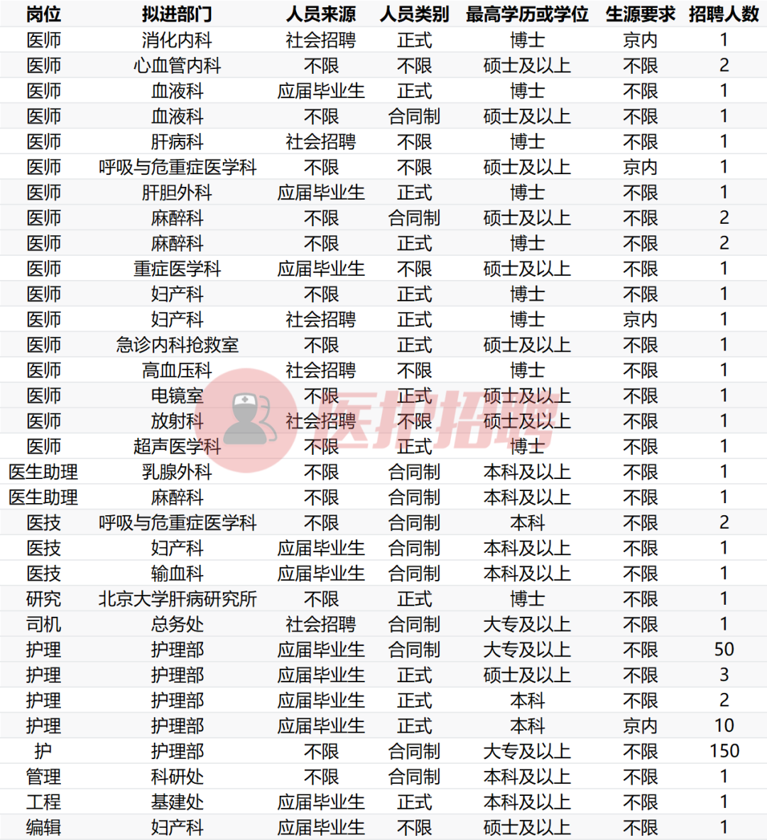 三甲名院!北京大学人民医院,23年度招聘护士、临床医师、急诊重症医师、麻醉医师、影像医师、科研等人才