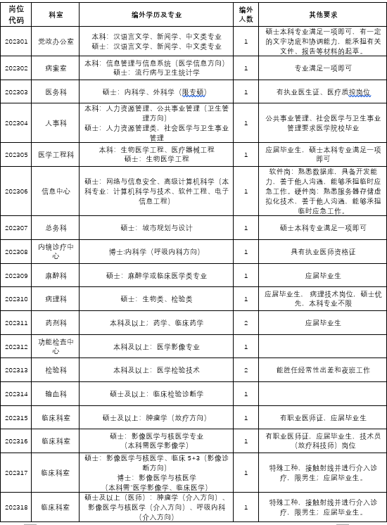 ◇本科要求第一学历本科(除护理等特殊专业外,不包括自考、成人教育或专升本等有专科经历的学历),参加全国普通高等公司招生统一考试入学的本科毕业生,具有本专业全日制统招本科学历,有学位证书。除特殊岗位外,临床类专业需有规培证。