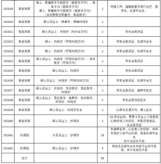 ◇硕士及以上要求经国家统一硕士研究生考试入学的全日制硕士毕业生(含经教育部认证的研究生学历),第一学历为普通全日制统招5年制/4年制本专业或临床类本科,有学位证书,专业对口。临床类专业需有规培证。