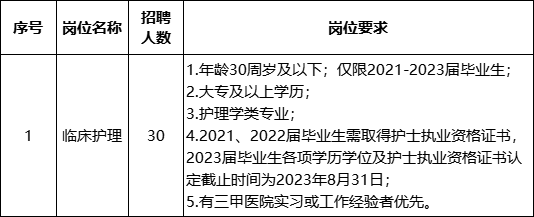 医护招聘温馨提示:福建医科大学孟超肝胆医院,2023年度招聘临床护士30人,报名截止至2023年4月16日。欢迎人才加入公司!