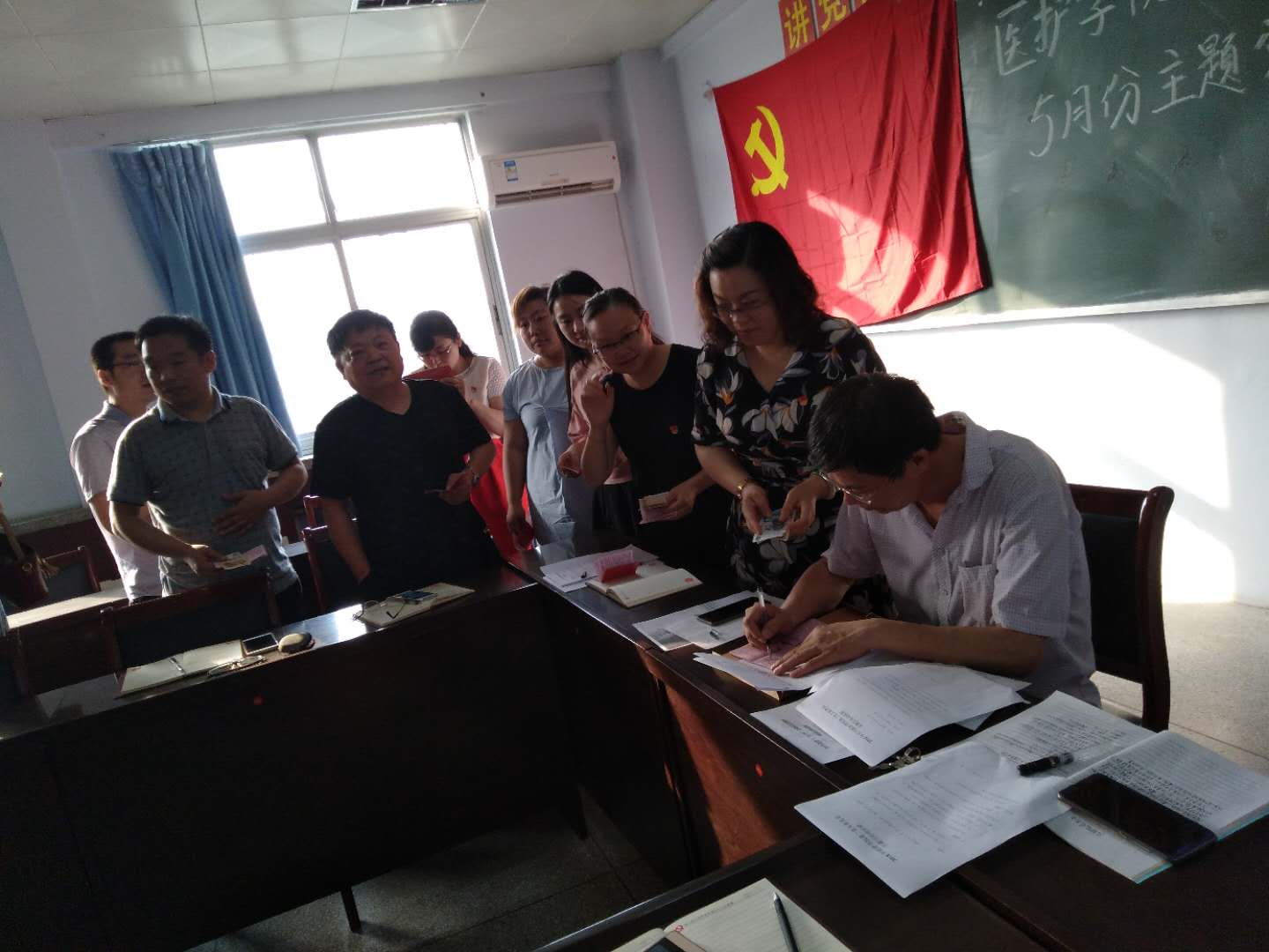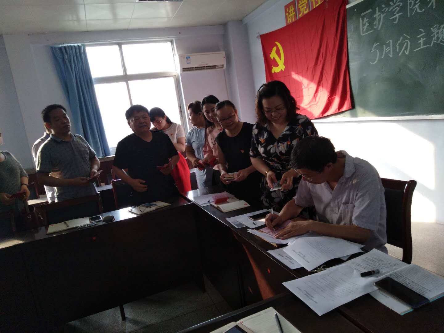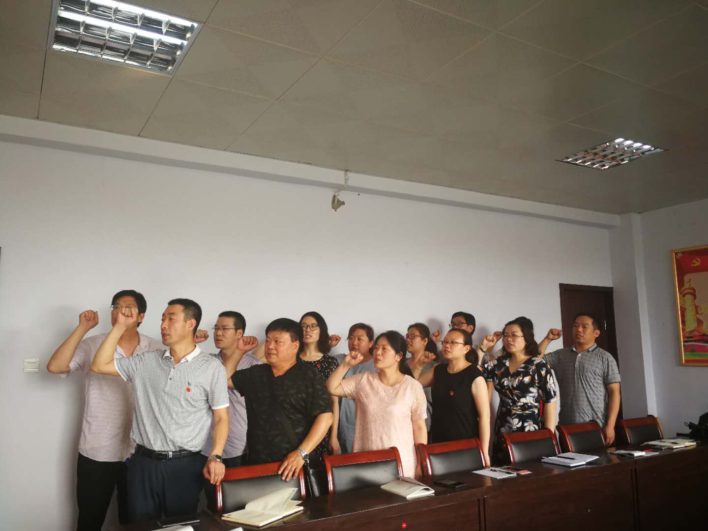 活动首先由宣传委员任彦斋传达了《中共公司关于开展党支部“3+N”主题党日活动的通知》,接着吉剑英传达了部署了2018年6月至12月第二支部党员主题活动日计划实施方案。其次,面对鲜红党旗,由聂明秀领誓,大家重温入党誓词,以示不忘初心,砥砺前行。再次郭进都带领大家学习《党章关于交纳党费要求》,大家现场依次自愿交纳5月党费,并在党费证上确认签名。最后在诵读经典阶段由高雯带领大家集中学习了《习近平在北京大学师生座谈会上的讲话》。