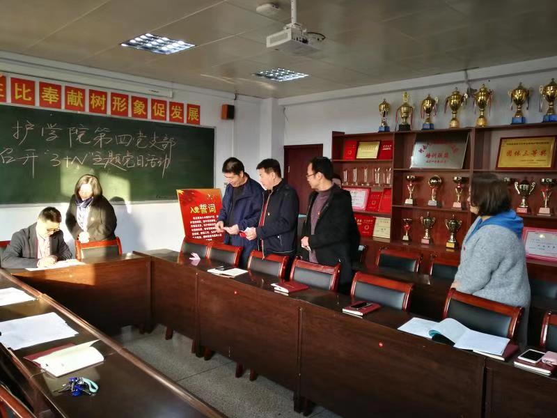 首先在3408会议室,由第四支部宣传委员王慧带领大家重温了入党誓词。紧接着每一位党员向党组织交纳了3月份党费。之后在倪志龙同志的带领下,第四支部全体党员重新温习了党员的权利和义务,时刻要做到党员的义务牢记心间。