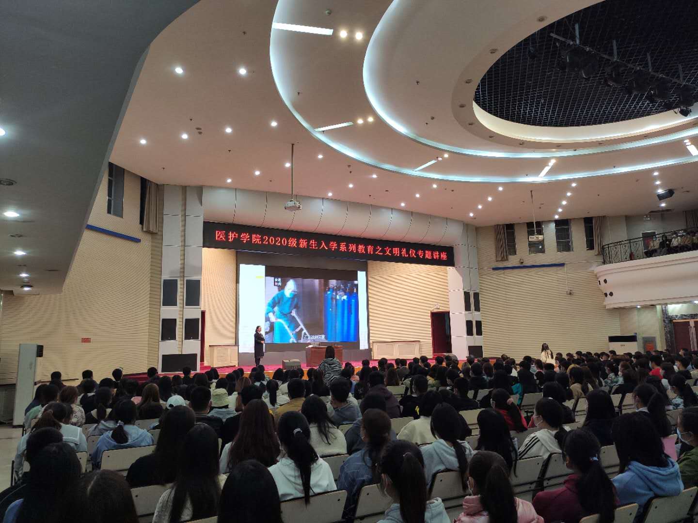 10月28日晚,yl6809永利在学术报告厅举办文明礼仪专题讲座。讲座由yl6809永利教学科岳琳老师主讲,2020级全体新生聆听了讲座。